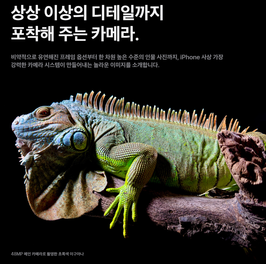 카메라 시스템 역시 업그레이드되었으며, 48MP 메인 카메라와 5배 망원 카메라를 포함한 놀라운 이미지를 촬영할 수 있습니다. 더 먼 거리에서도 선명한 사진을 찍을 수 있게 되었습니다.