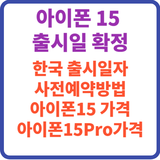 아이폰 15의 출시일이 확정되었습니다. 아이폰 15 출시일은 추석명절 이후, 10월 13일이라고 합니다. 아이폰 15 출시일과 함께 아이폰 15 사전예약은 9월 15일부터 시작이 되었으니 미리 예약하실 수 있으며, 사전예약을 통해 먼저 구매할 수 있는 혜택을 받을 수 있습니다.