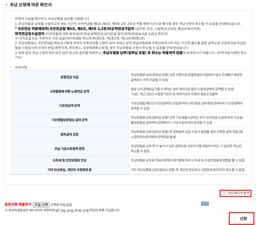 국민연금 추납보험료 신청 시 필요한 서류