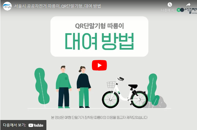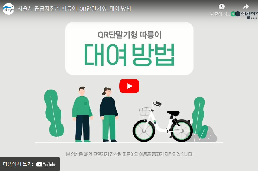 따릉이 대여 방법이 궁금하시면 동영상을 먼저 시청하시기 바랍니다.