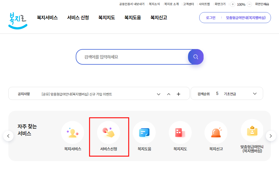 1. 구글에서 '복지로'를 검색한 후 홈페이지에 접속하거나 아래의 링크를 이용하여 접속을 합니다.