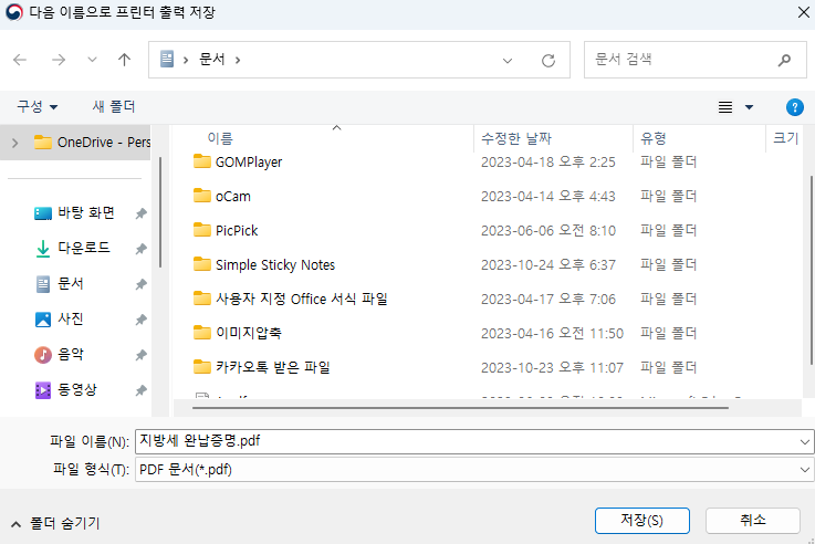 그리고 다음화면에서 저장할 파일이름을 지정하고 저장버튼을 클릭하면 컴퓨터에 파일로 저장이 됩니다.