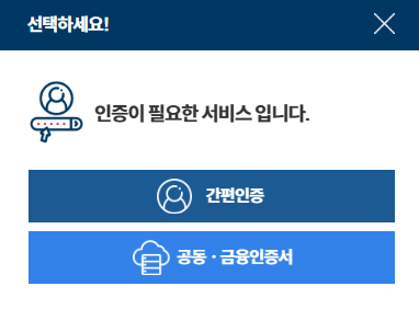 3. 공인인증서가 있으면 공인인증서로 인증을 하고, 공인인증서가 없으면 간편 인증으로 로그인을 진행합니다.