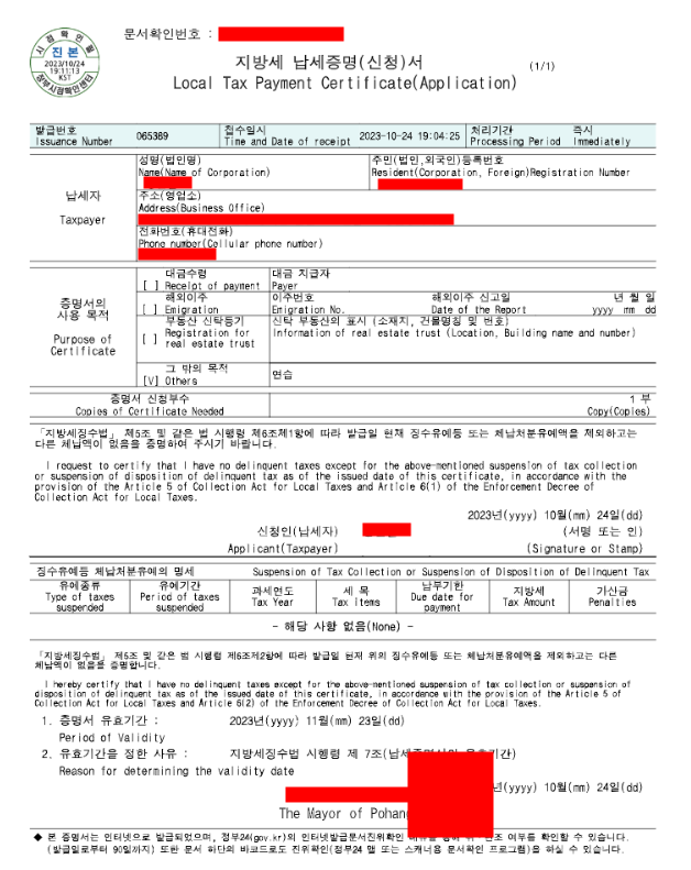 - 대출 신청 제한: 대출을 신청할 때에도 완납증명서가 필요합니다. 세금 체납 기록이 있으면 대출 신청이 거절될 수 있습니다.