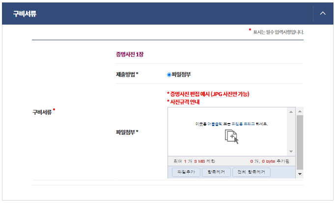 - 6개월 이내에 촬영한 3.5㎝×4.5㎝의 모자 등을 쓰지 않은 상반신 사진 1장