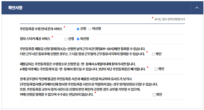7. 확인사항의 내용을 확인하고 항목을 체크합니다.