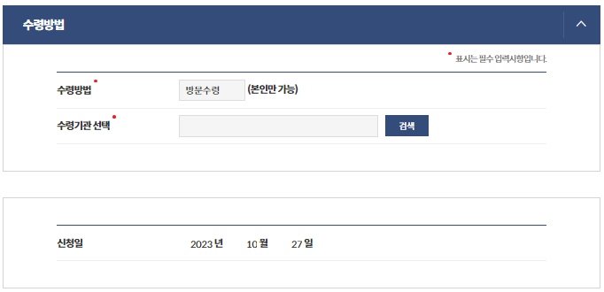 9. 주민등록을 수령할 방법과 수령장소를 선택합니다.