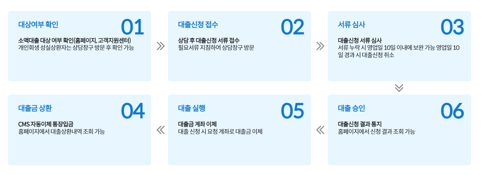 | 변제수행납입증명원 또는 면책결정문 | 개인회생으로 인한 소액대출 대상자만 해당 |