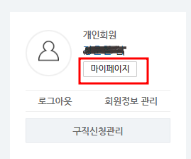 1. 로그인이 완료되면 마이페이지를 클릭합니다.