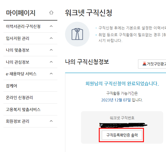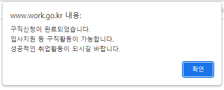 5. 아래와 같은 화면을 보게 되면 구직신청이 무사히 된 것입니다.