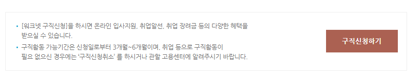- 모든 입력을 마치었으면 구직신청하기를 클릭합니다.