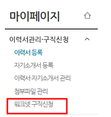 1. 마이페이지에서 워크넷 구직 신청을 클릭합니다.